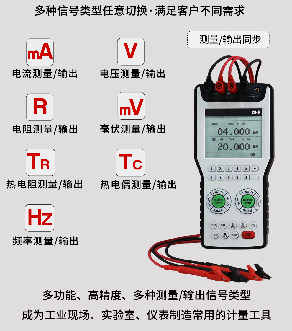 過程校驗(yàn)儀是一種多功能、高精度的便攜式儀器,可用于校準(zhǔn)、測試工業(yè)過程裝置及各種電氣設(shè)備,支持電流、電壓、電阻、頻率、熱電偶、熱電阻等多種信號(hào)類型,最高精度可達(dá)0.01%F.S,是工業(yè)現(xiàn)場、實(shí)驗(yàn)室以及各類儀表制造商必備的計(jì)量測試工具。